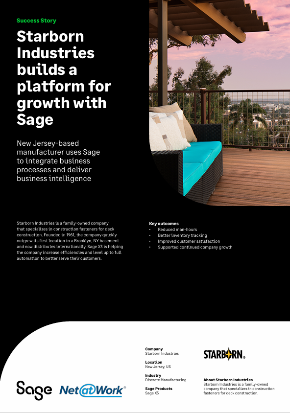 Starborn Industries builds a platform for growth with Sage Starborn Industries is a family-owned company that specializes in construction fasteners for deck construction. Founded in 1961, the company quickly outgrew its first location in a Brooklyn, NY basement and now distributes internationally. Sage X3 is helping the company increase efficiencies…