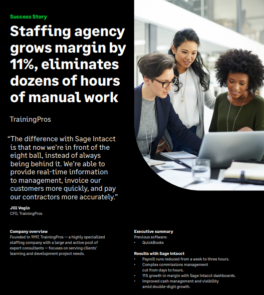 10 reasons staffing and recruiting agencies choose Sage Intacct As a finance leader of a staffing or recruiting agency, you know that moving to a new accounting system is a big undertaking, and you may choose a new vendor only once or twice in your career. If you are considering…
